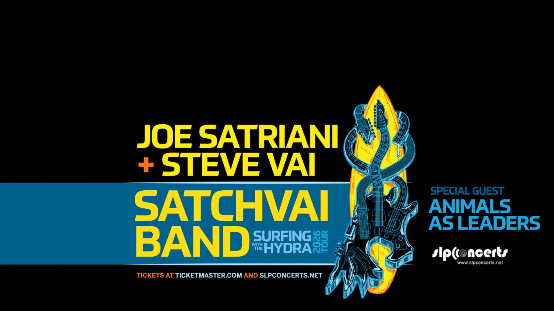 Get tickets now for Joe Satriani and Steve Vai’s Surfing With The Hydra 2026 Tour! The Satch/Vai Band (w/ Kenny Aronoff, Marco Mendoza & Pete Thorn) is joined by special guests Animals as Leaders! 🤘🎸🌊
